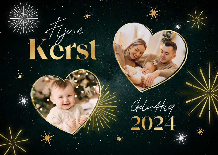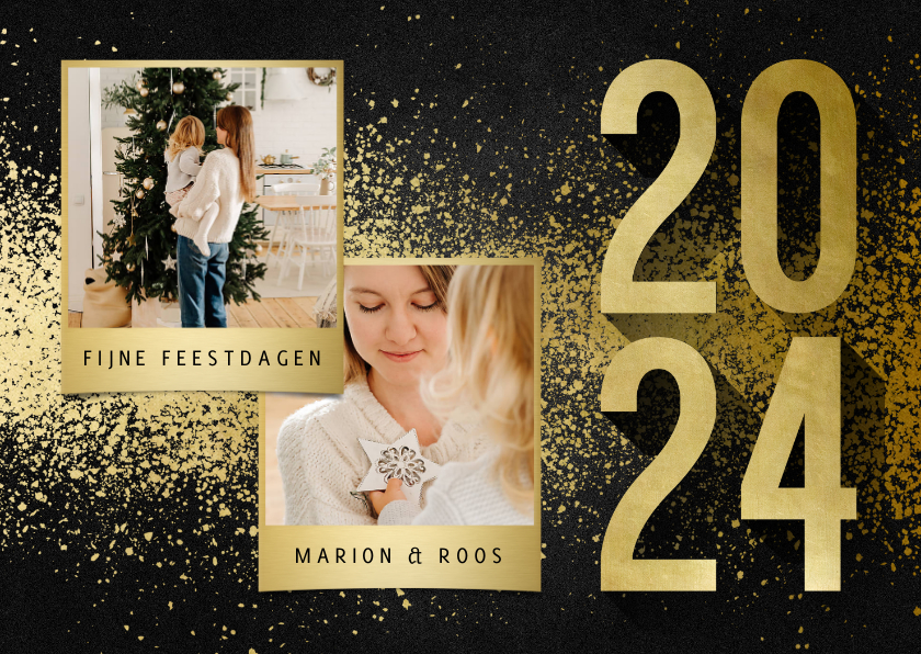 Kerstkaart met 2 foto’s goudlook 2024 en | Kaartje2go