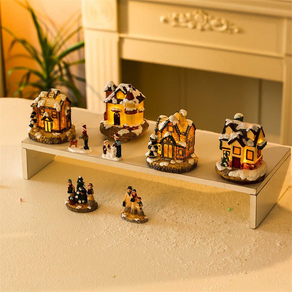 Noël Led Light House Ornements Résine Petit Village Bâtiment Xmas